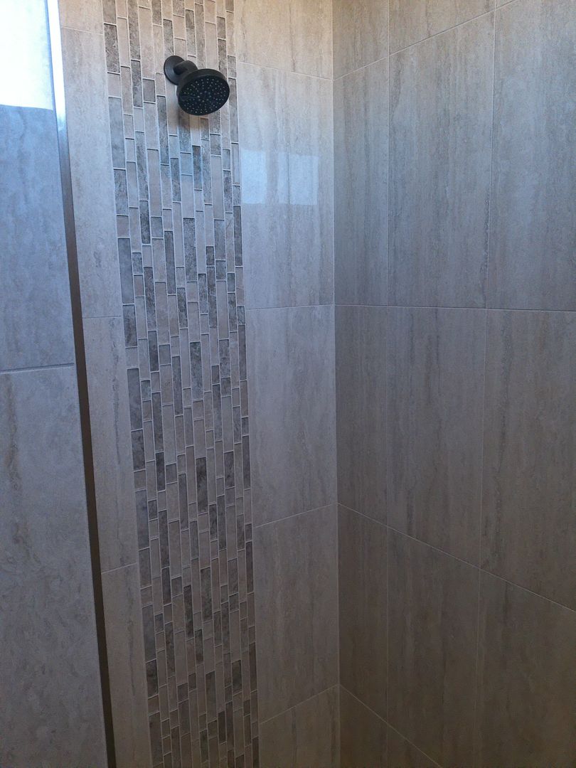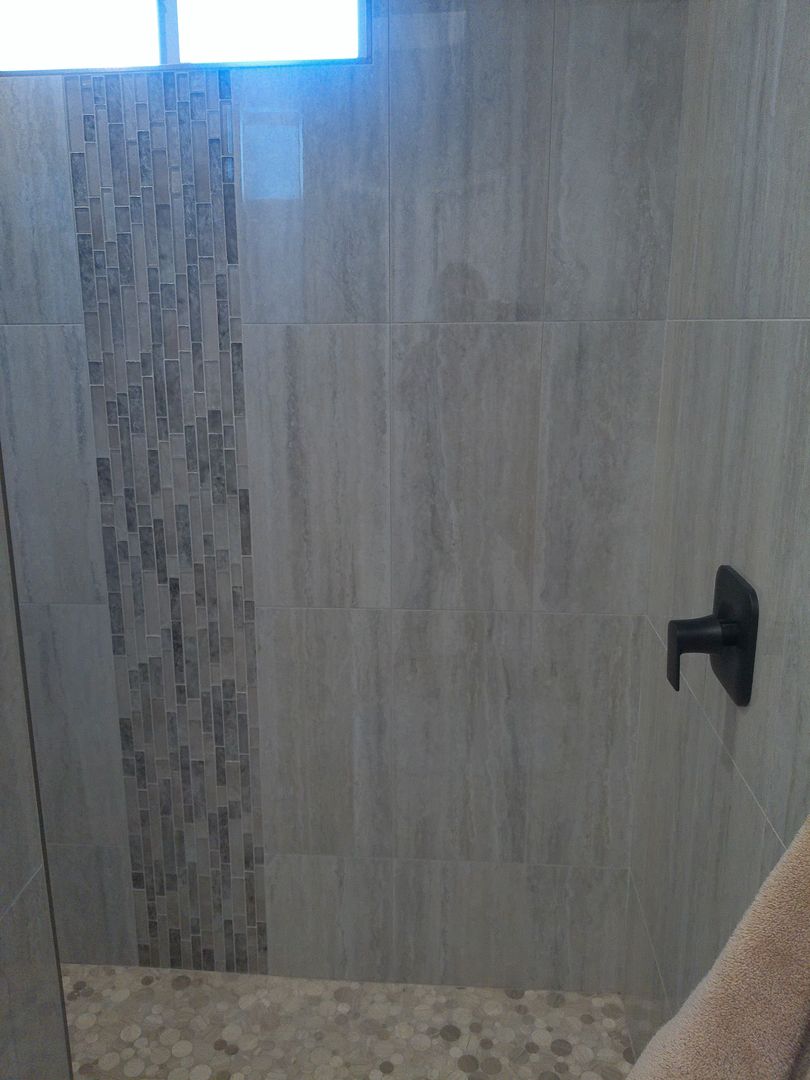 Guest Bathroom: Modern walk-in shower.